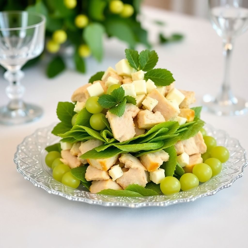 Тем, кто любит готовить строго по инструкции, стоит взять за ориентир классический вариант, а уже затем подключать фантазию. На этом этапе удобно опираться на подробный рецепт салата Тиффани с курицей и виноградом с фото и детальными комментариями по каждому этапу. Освоив базовую технику, уже гораздо легче подстраивать блюдо под конкретный повод: уменьшать или увеличивать порцию, усиливать ореховый акцент, добавлять любимые специи или менять соус.